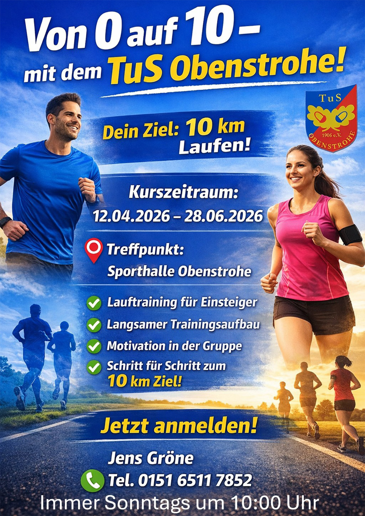 Treffpunkt: Jeden Sonntag um 10:00 Uhr an der Sporthalle Obenstrohe