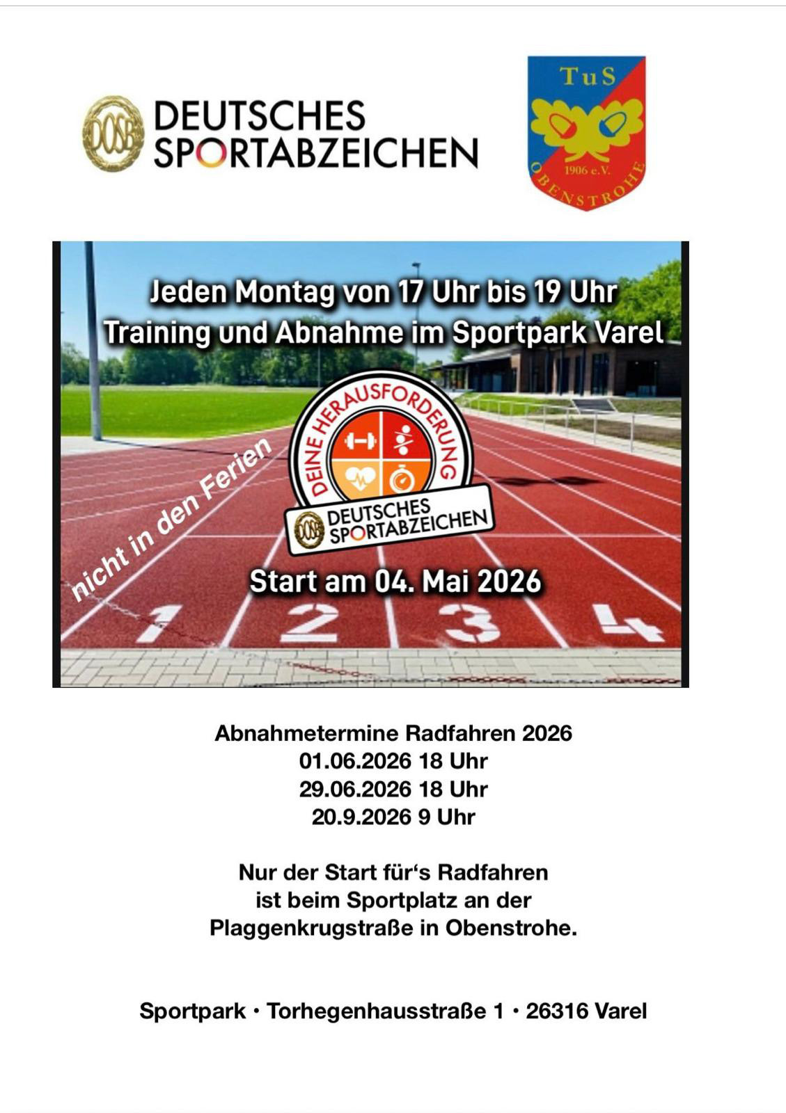 mit dem Training und der Sportabzeichen-Abnahme im Sportpark Varel.